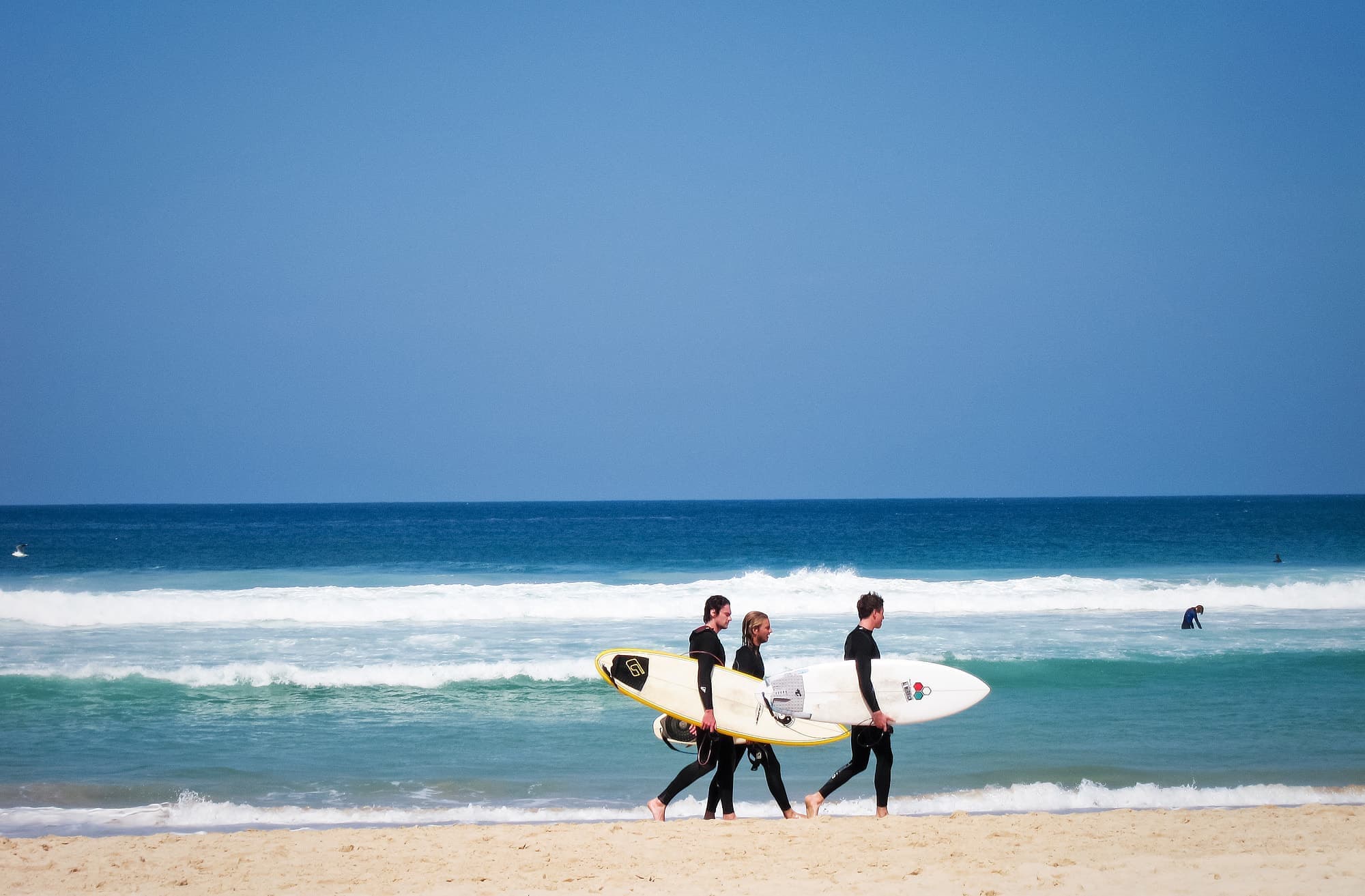 最初はインストラクターにサーフボードを押してもらい波に乗る感覚を覚え、波の見方、波に乗るタイミングを学びます。